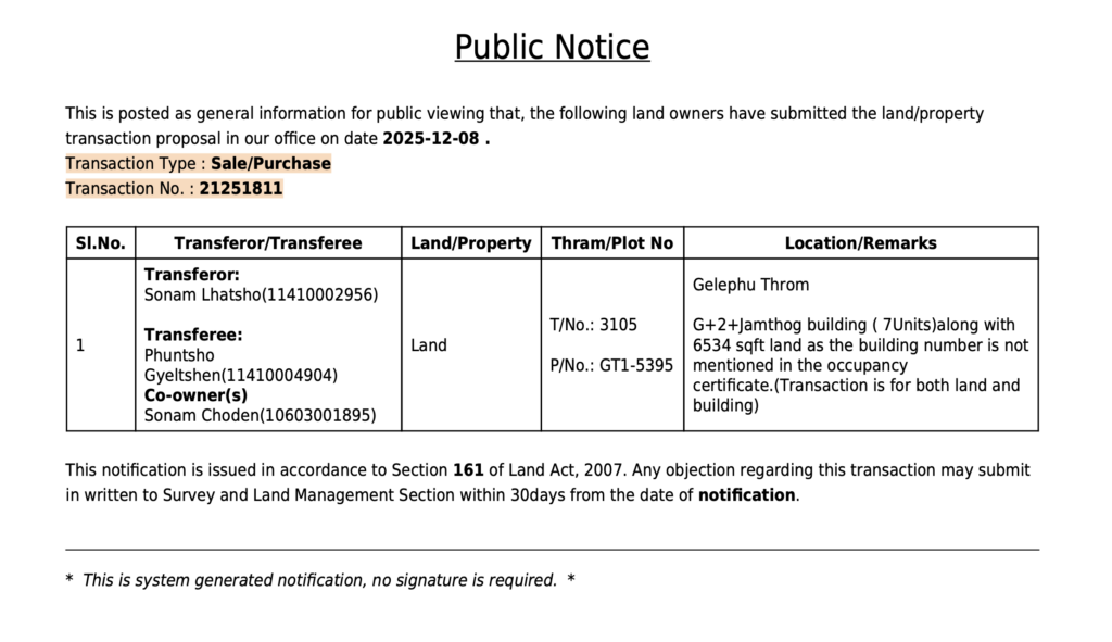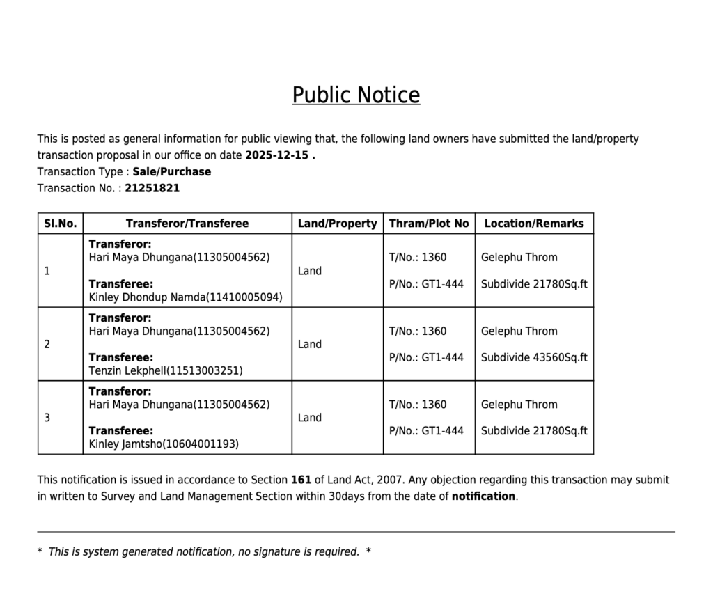 This is posted as general information for public viewing that, the following landowners have submitted the land/property