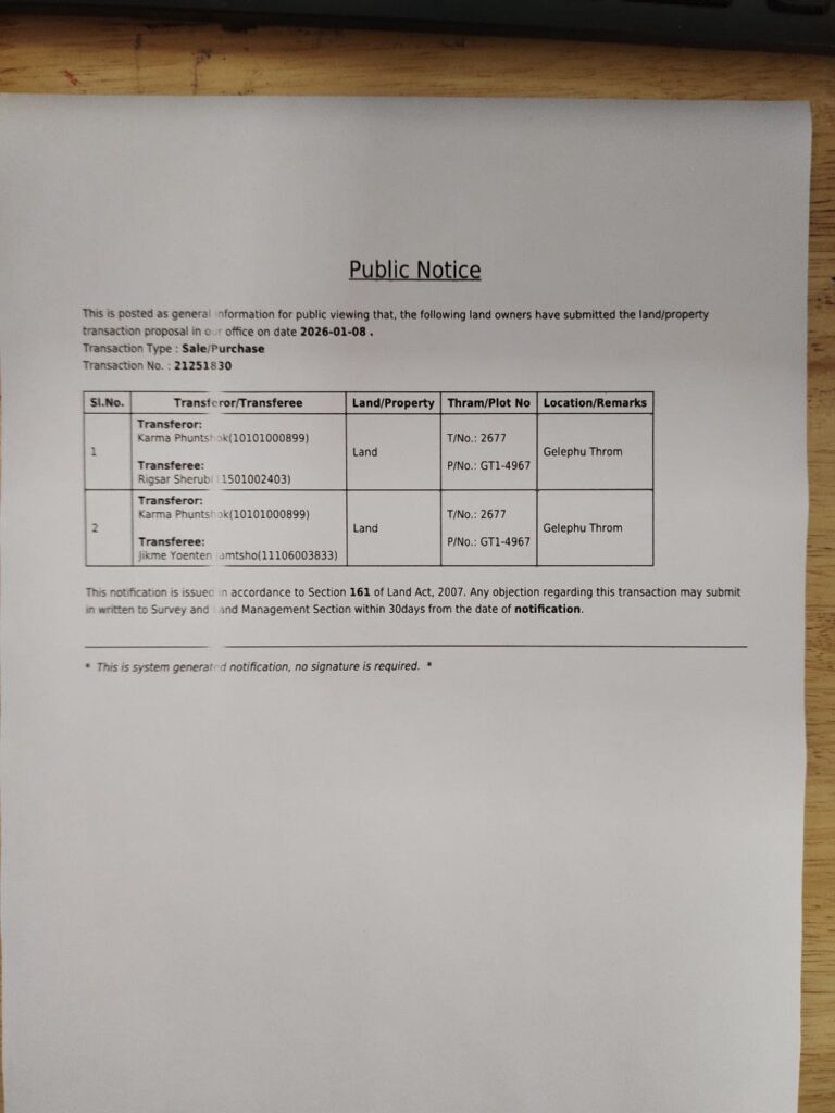This notification is issued for public information that the following landowners have submitted land/property transaction proposals to our office on 31 December 2025.